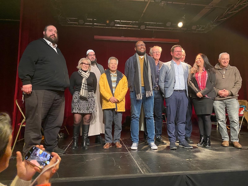 Photo de groupe avec la maire-adjointe et les chefs religieux juifs, musulmans, protestants et catholiques
