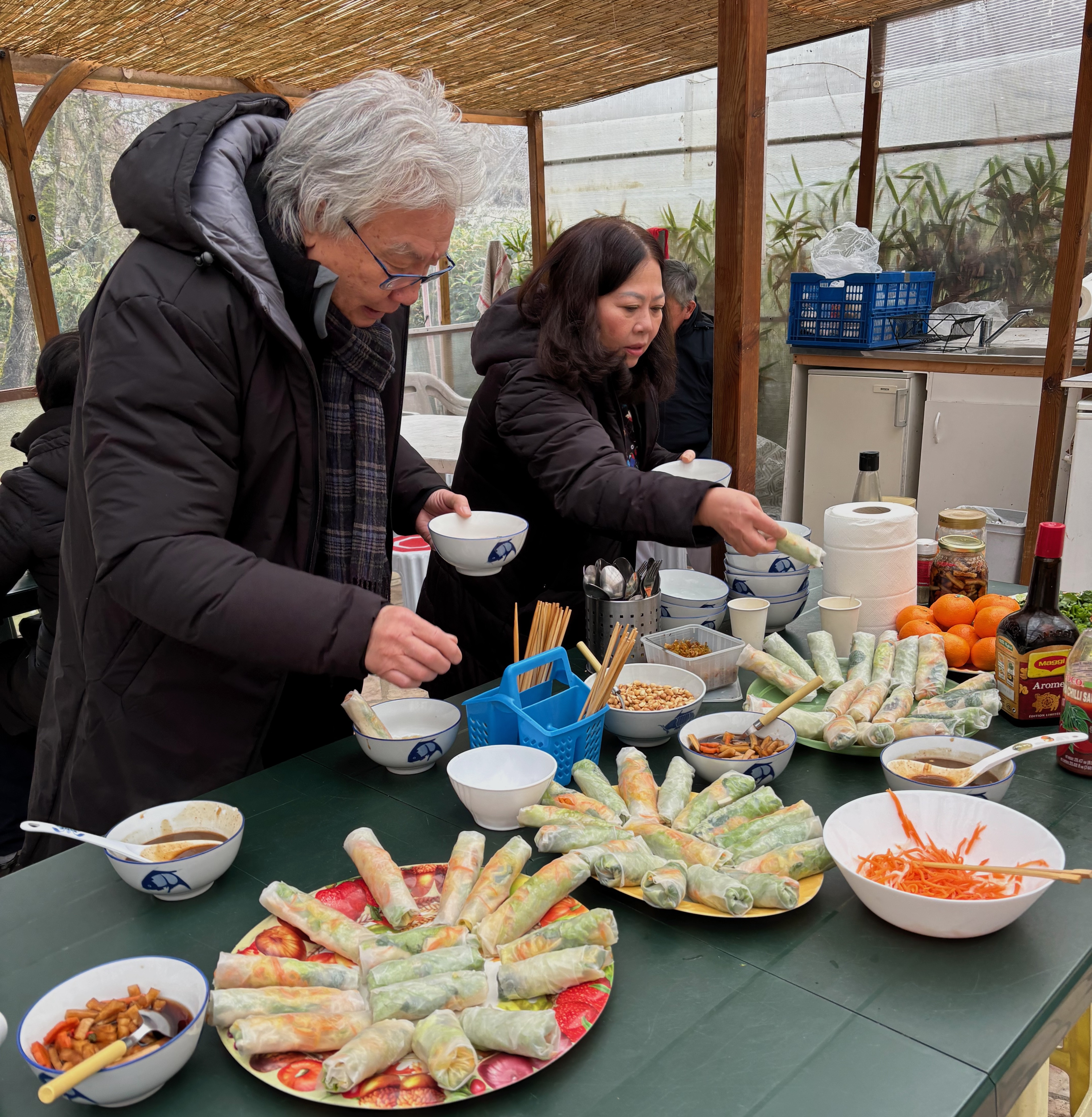 Repas végétarien préparé par Vân (à droite)