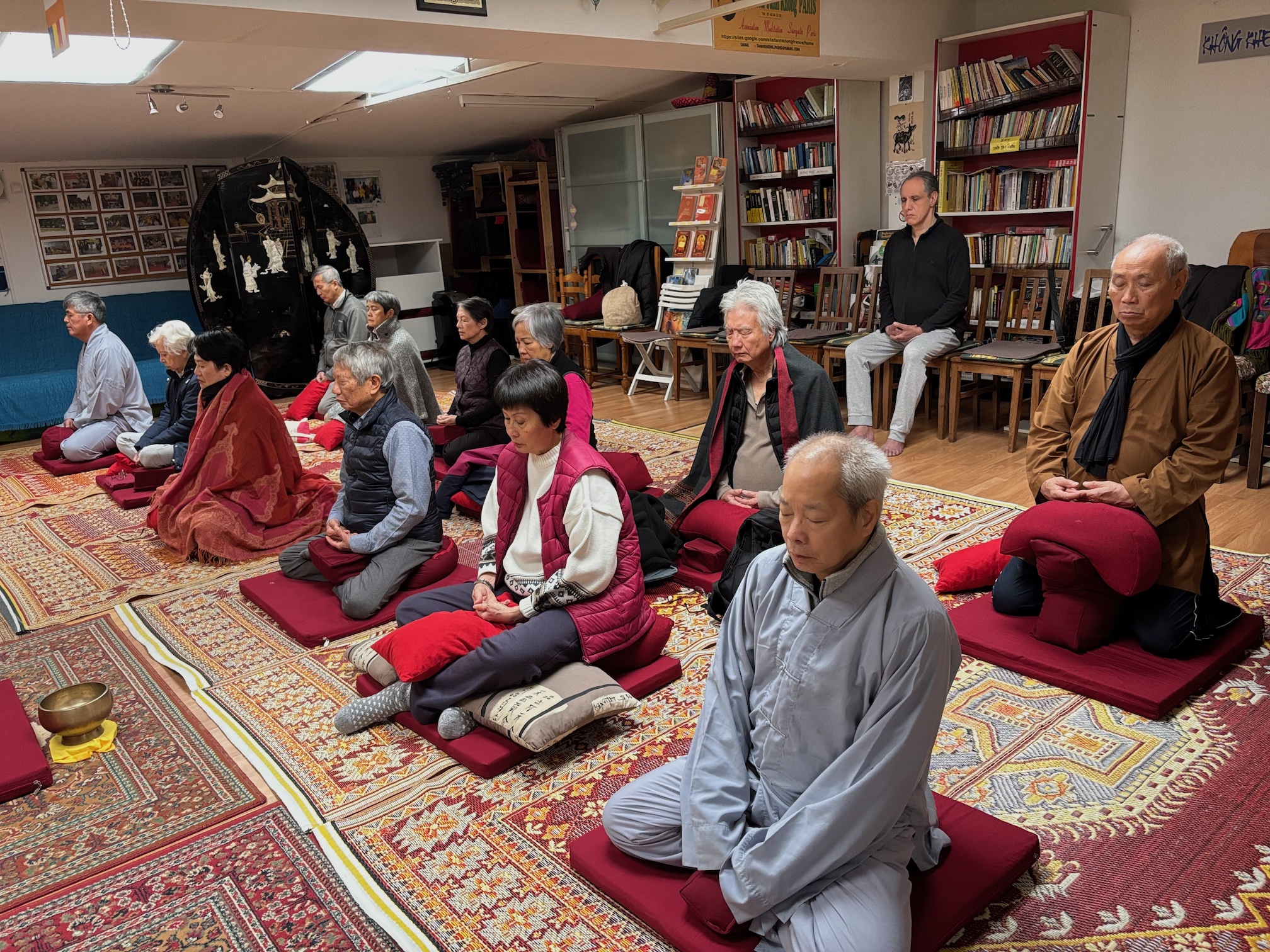 • Programme : Marche méditative (10 minutes), méditation assise (40 minutes), partage d'expériences, révision des enseignements du Dharma • Participation moyenne : 12 à 16 personnes souhaitant se rencontrer et échanger sur les enseignements du Bouddha et les articles publiés sur tanhkhong.org, mais qui ne sont pas disponibles le samedi matin